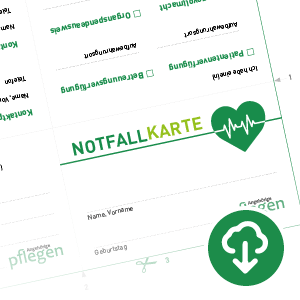 Tragen Sie wichtige Informationen, etwa welche Vorsorgedokumente vorliegen und wer zu informieren ist, immer bei sich - mit unserer taschengerechten Notfallkarte.