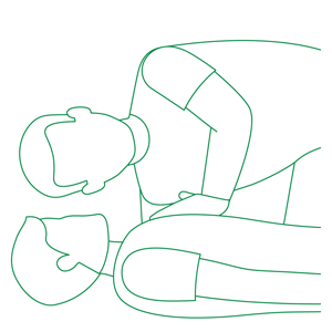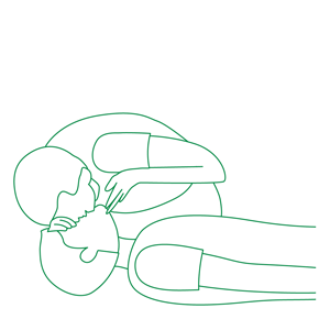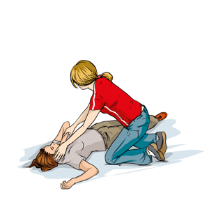 Wenn Sie feststellen, dass die Person bewusstlos ist und normal atmet, drehen Sie sie in eine Seitenlage (Stabile Seitenlage). Auch wenn die Herzdruckmassage erfolgreich ist und die Person wieder selbstständig atmet und vielleicht auch das Bewusstsein wiedererlangt, kann es sinnvoll sein, sie auf die Seite zu drehen.