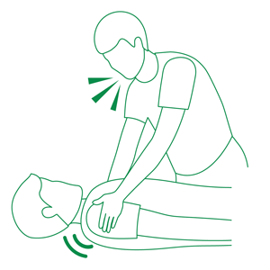 Danach setzen Sie abwechselnd Herzdruckmassage und Beatmung fort: 30-mal Drücken, 2-mal Beatmen. Auch hier gilt: Wenn Sie sich bei der Beatmung unsicher fühlen, führen Sie einfach kontinuierlich nur die Herzdruckmassage durch.
