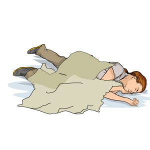 Zum Erhalt der Körperwärme können Sie die bewusstlose Person mit einem Kleidungsstück oder einer griffbereiten Decke zudecken. Bleiben Sie unbedingt bei ihr und kontrollieren Sie immer wieder, ob sie atmet.