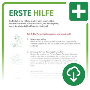 Ein wichtiger Hinweis: Wird die Atmung unregelmäßig oder setzt aus, drehen Sie die Betroffene oder den Betroffenen zurück auf den Rücken und beginnen mit einer Herzdruckmassage.