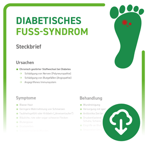 Erfahren Sie in unserem Steckbrief, was die Ursachen, Symptome und Behandlungs- sowie Präventionsmöglichkeiten bei einem diabetischen Fußsyndrom sind.